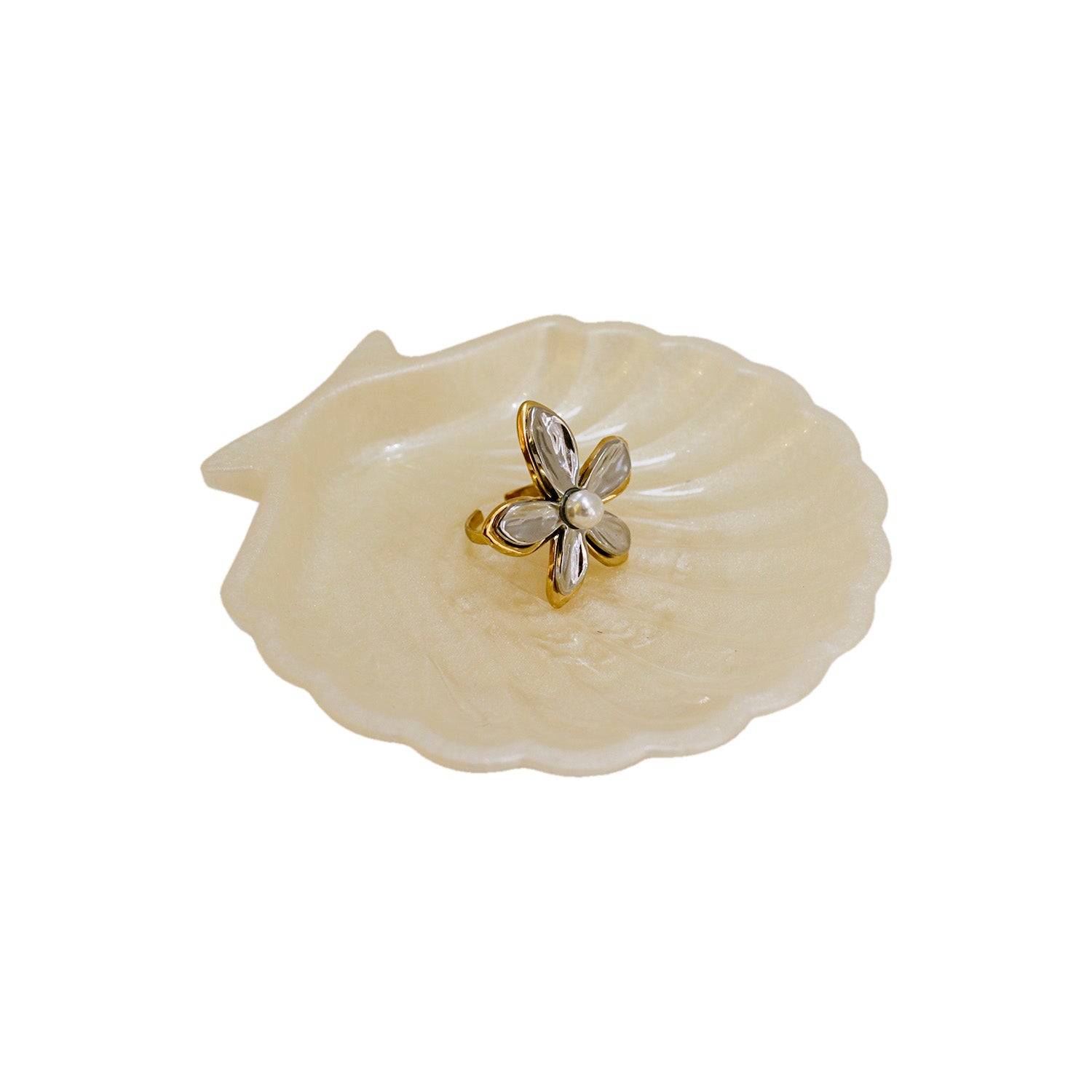 ANILLO FLOR BICOLOR CON PERLA